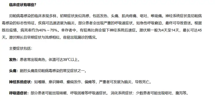 针对公众最关心的“是否会传入我国”的问题,国家疾控局与多位专家已给出明确研判:我国尚未发现尼帕病毒病例!