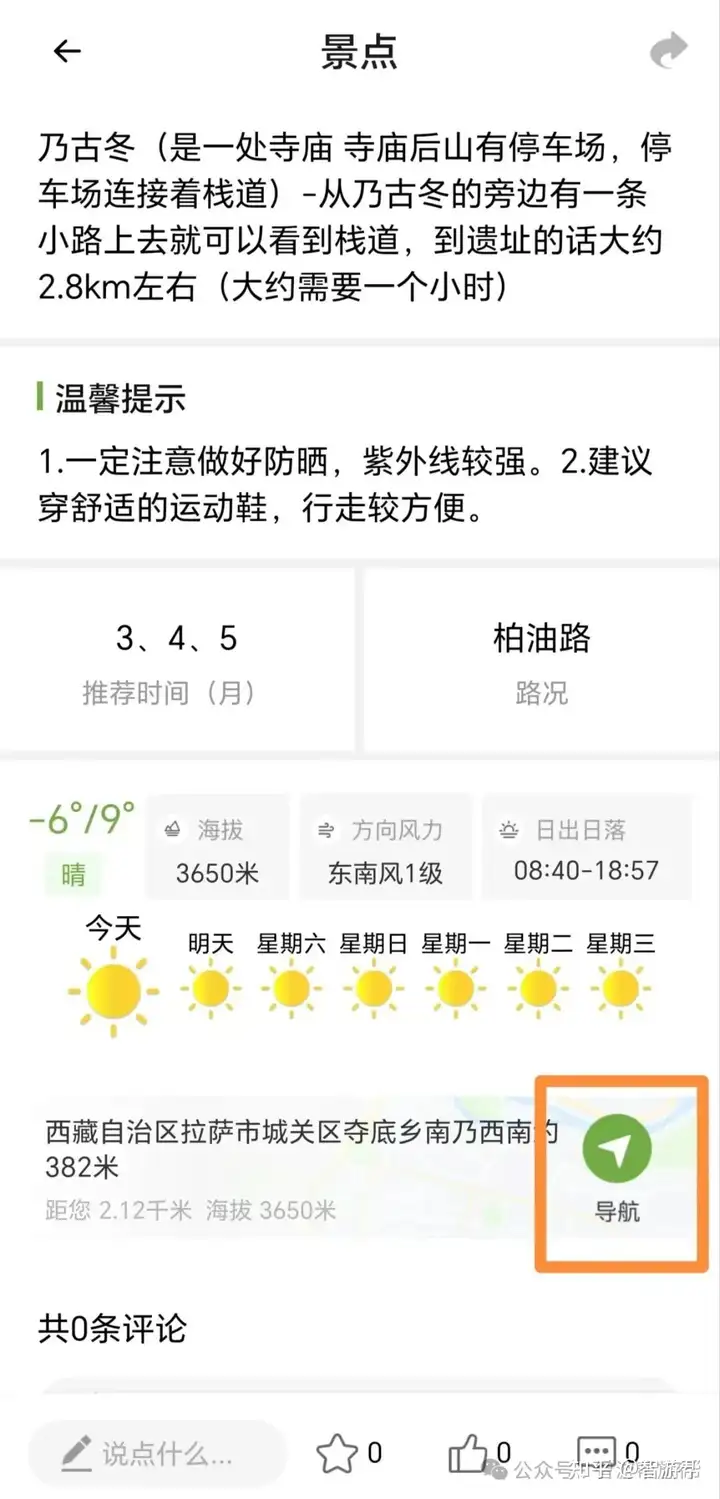 在景点详情页里,历史介绍、门票价格、开放时间只是基础;往下滑动,你会看到行程计划(到了景区怎么玩,要先去哪再去哪)、避坑指南、实时天气、路况、海拔等关键信息。