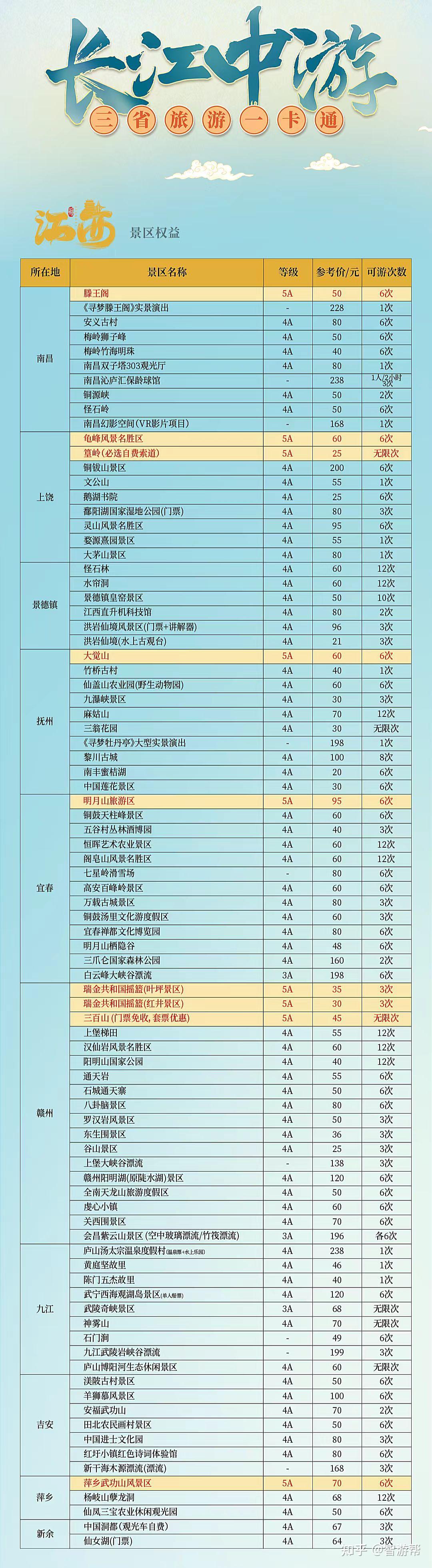 什么意思呢?就是未来一年,你去湖南、湖北、江西这三省,300多个景点(包括18个5A级景点)门票全免!实现旅行自由!